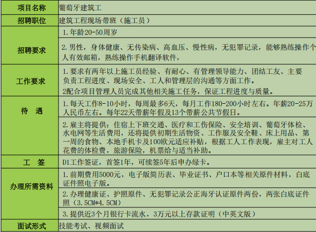 葡萄牙建筑工程现场(施工员)招聘简章.docx