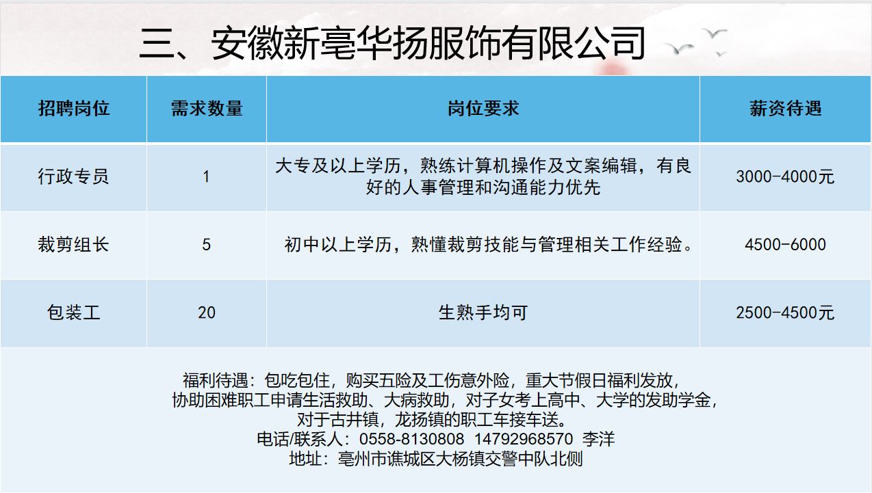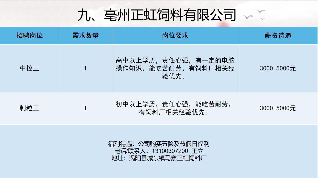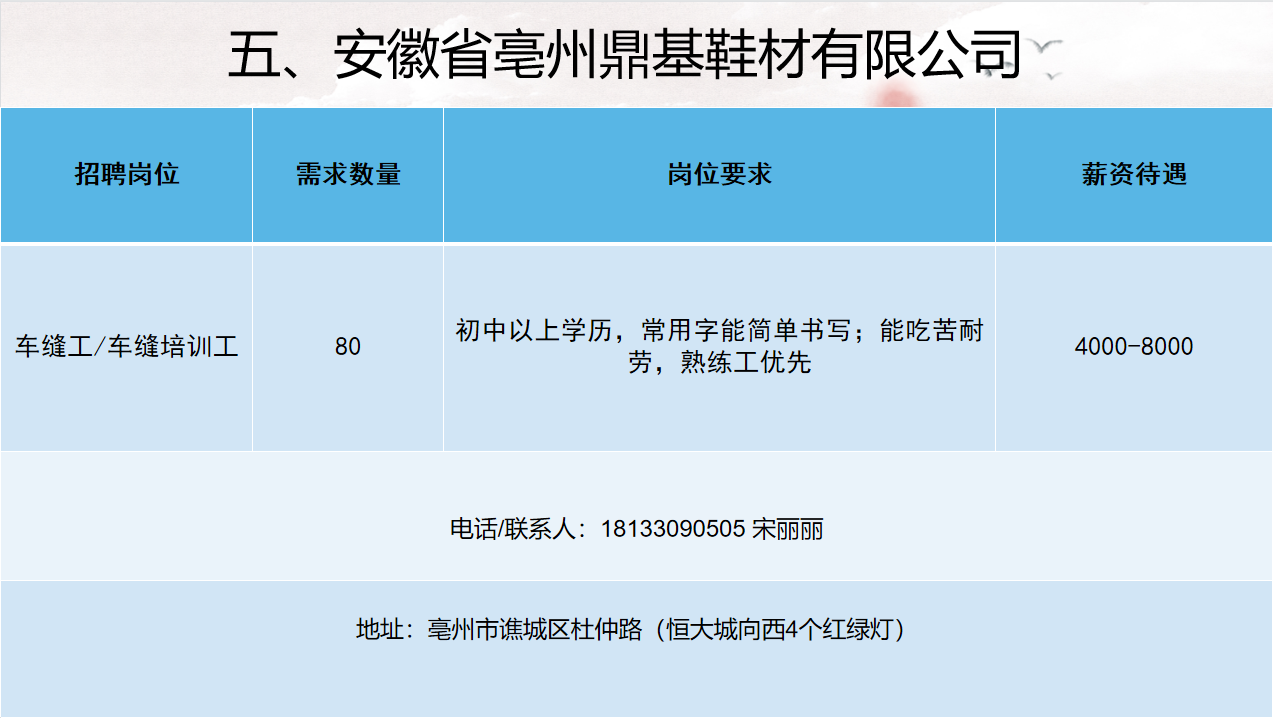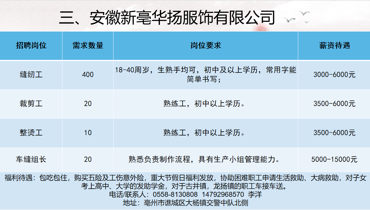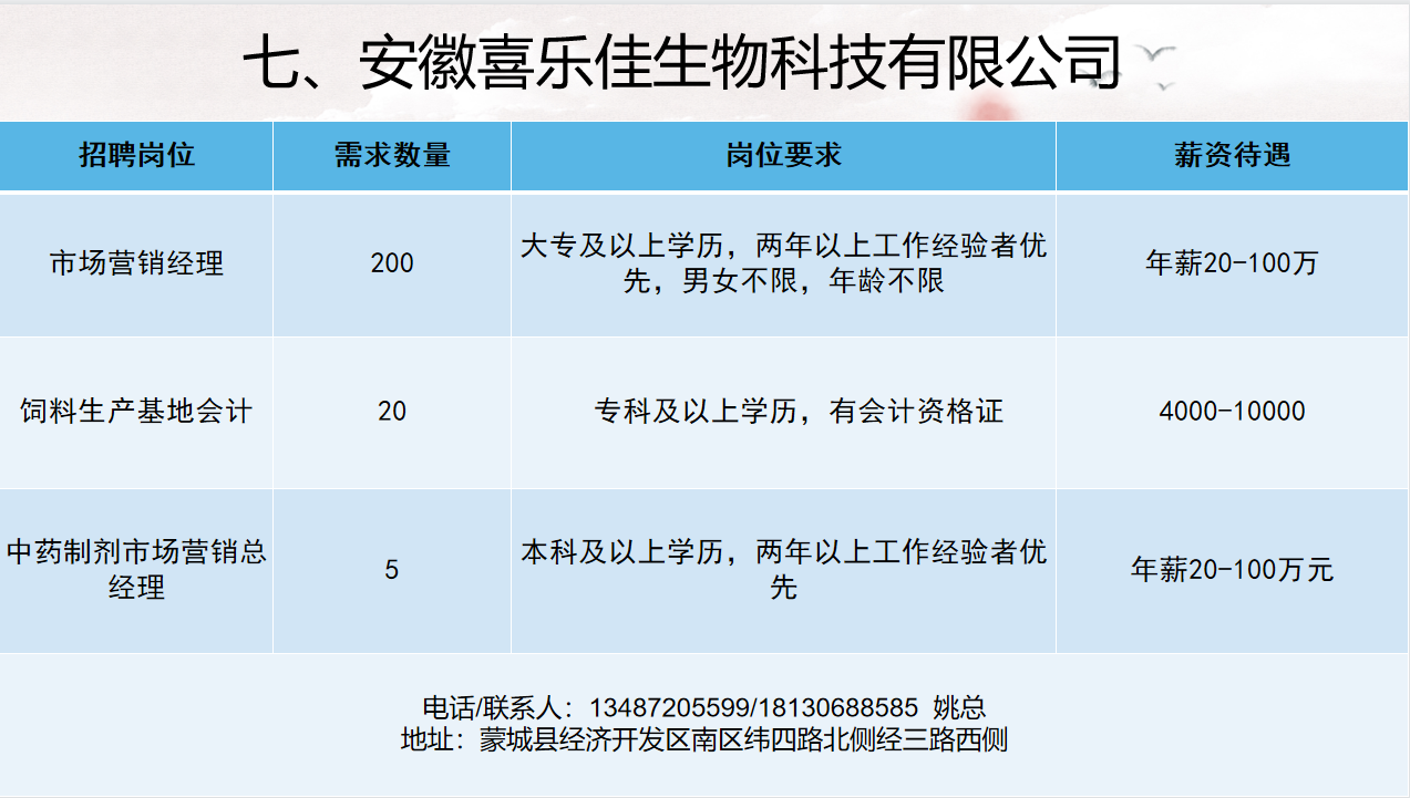 2022年亳州市工业企业用工需求表(第三期)