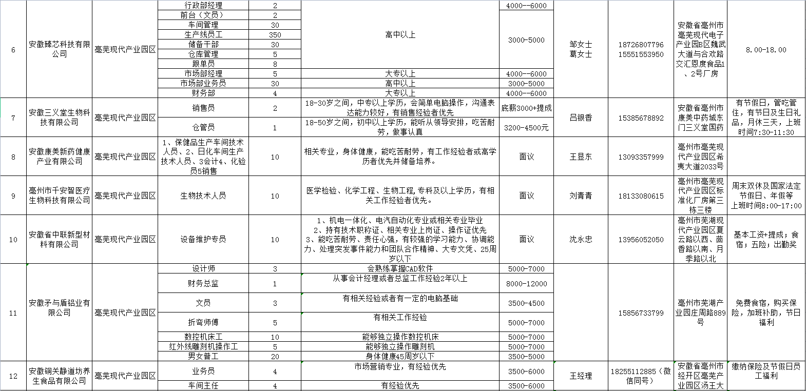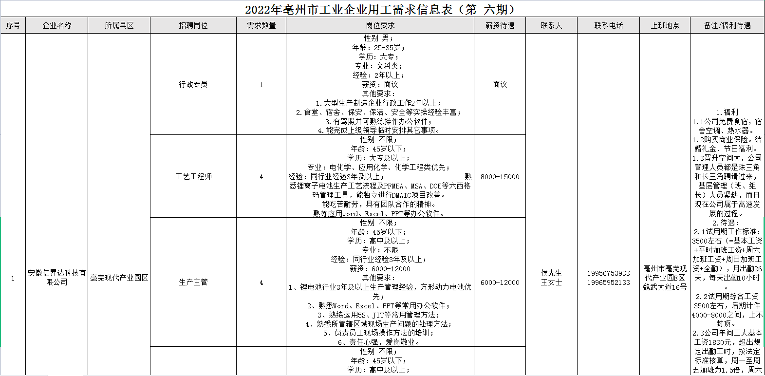 2022年亳州市工业企业用工需求信息表(第六期).xlsx