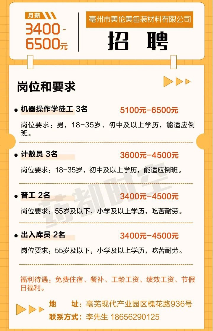亳州市美伦美包装材料有限公司 招聘启事