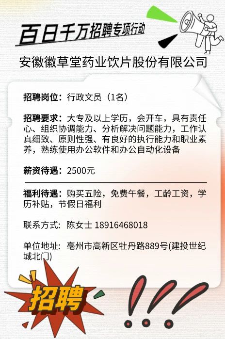 安徽徽草堂药业饮片股份有限公司招聘启事