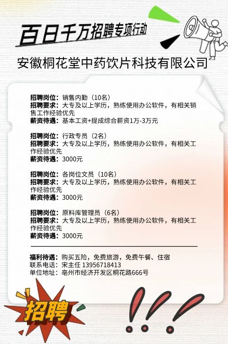 安徽桐花堂中药饮片科技有限公司招聘启事