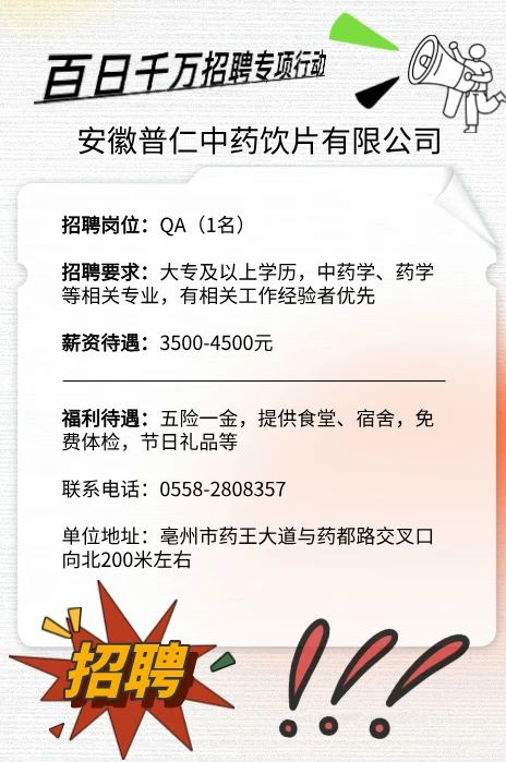 安徽普仁中药饮片有限公司招聘启事