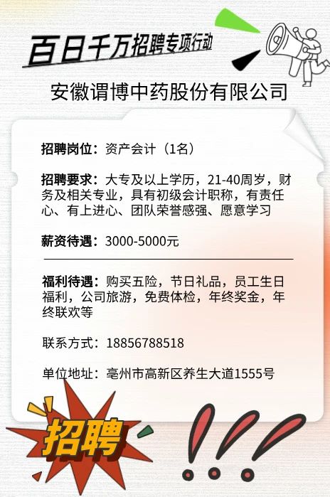安徽谓博中药股份有限公司招聘启事