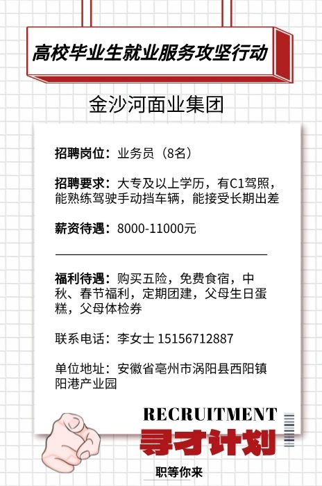 金沙河面业集团招聘启事
