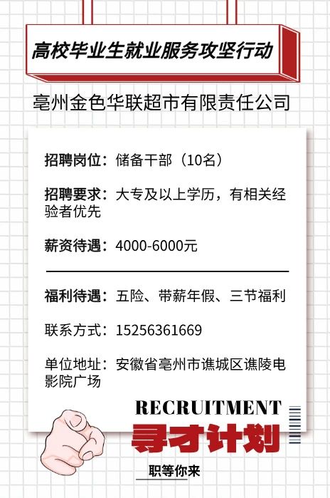 亳州金色华联超市有限责任公司招聘启事