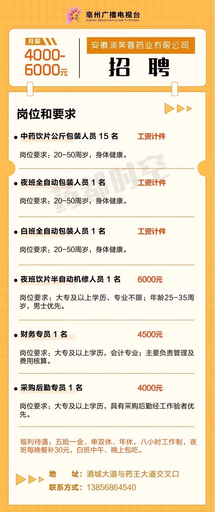 安徽润芙蓉药业有限公司招聘启事