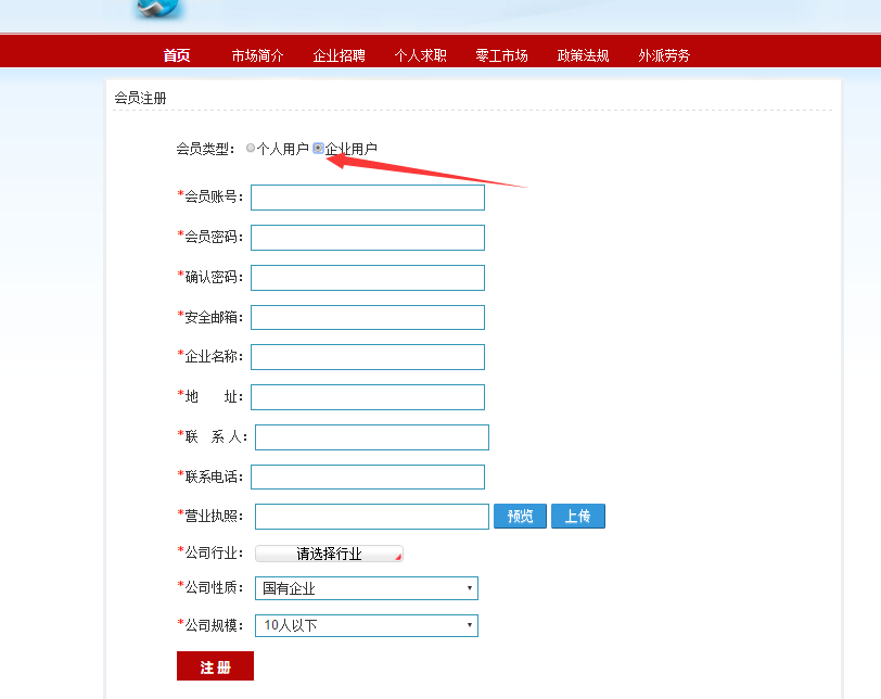 1、进入亳州同德人力资源网站,新会员点击“注册”