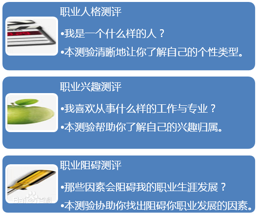 职业测评是心理测验的一个分支,在学术上被广泛认可的心理测验的定义是“行为样组的客观的标准的测量”。如果你真的想借助职业测评达到了解自我的目的,应该选择科学的职业测评。科学的职业测评以特定的理论为基础,经过设计问卷、抽样、统计分析、建立常模等程序编制,必须符合三个条件。